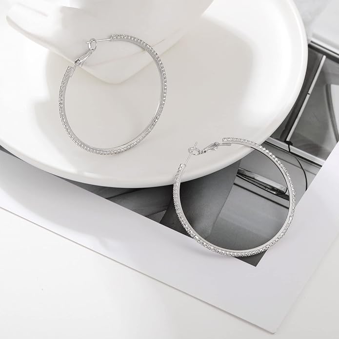 - HYPOALLERGENIC HOOPS EARRINGS FOR WOMEN:crystal hoop earrings for women are made of high-quality copper with S925 sterling silver post, silver rhinestone earrings with AAA+ cubic zirconia, long-term color preservation, no fade, and rust, lead and nickel free, they won't hurt your sensitive ears. Excellent materials for sensitive ears in daily use.