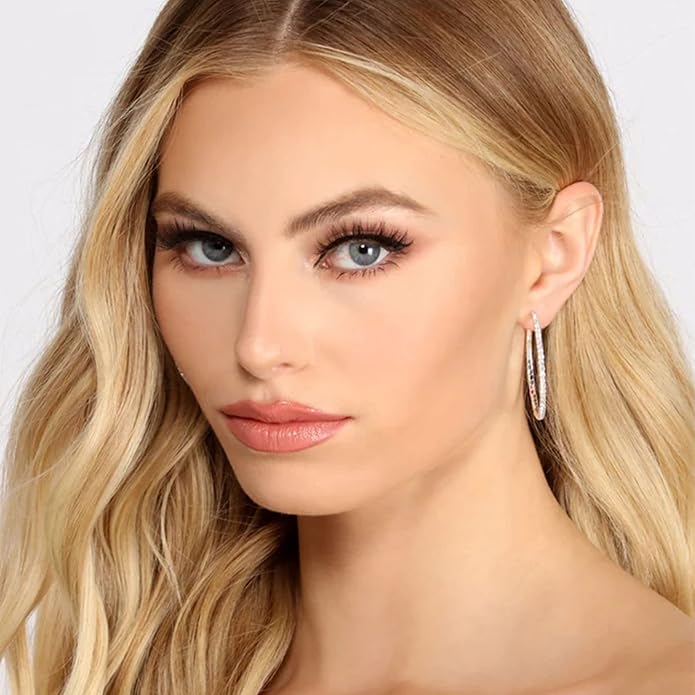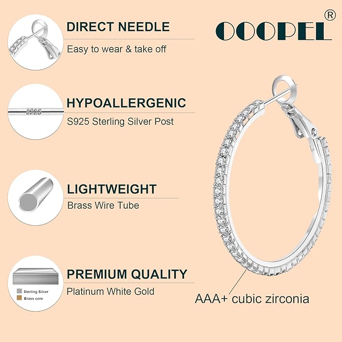 - LIGHTWEIGHT STERLING SILVER HOOPS:Classic sparkly rhinestone hoop earrings are a great statement piece for any outfit, All eyes are sure to be on you when you accessorize with OOOPEL hoop earrings featuring large silver hoops with shimmering rhinestone detailing.