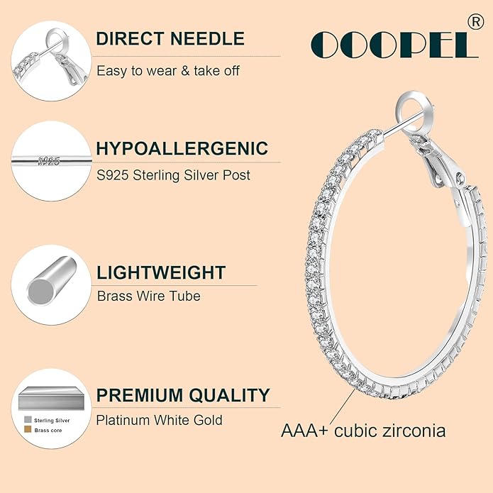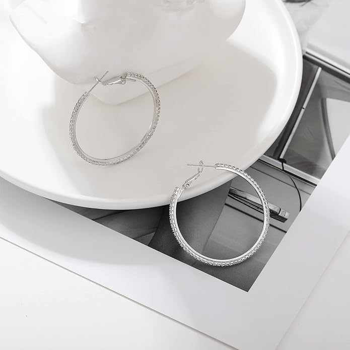 - LIGHTWEIGHT STERLING SILVER HOOPS:Classic sparkly rhinestone hoop earrings are a great statement piece for any outfit, All eyes are sure to be on you when you accessorize with OOOPEL hoop earrings featuring large silver hoops with shimmering rhinestone detailing.
