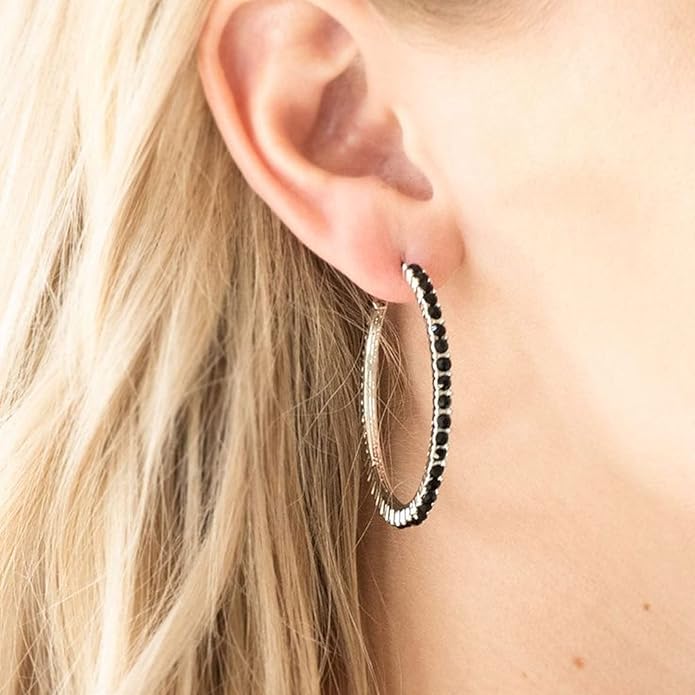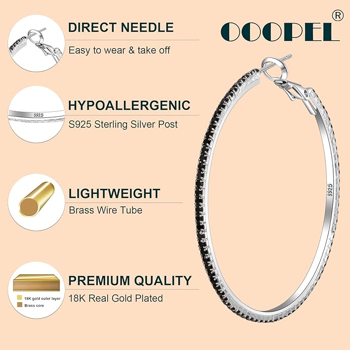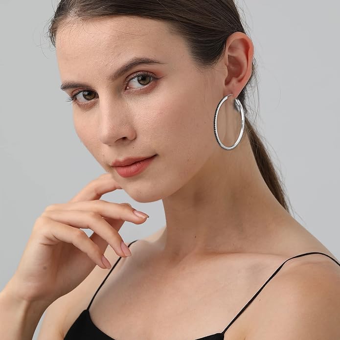 - LIGHTWEIGHT STERLING SILVER HOOPS:Classic sparkly rhinestone hoop earrings are a great statement piece for any outfit, All eyes are sure to be on you when you accessorize with OOOPEL hoop earrings featuring large black hoops with shimmering rhinestone detailing.