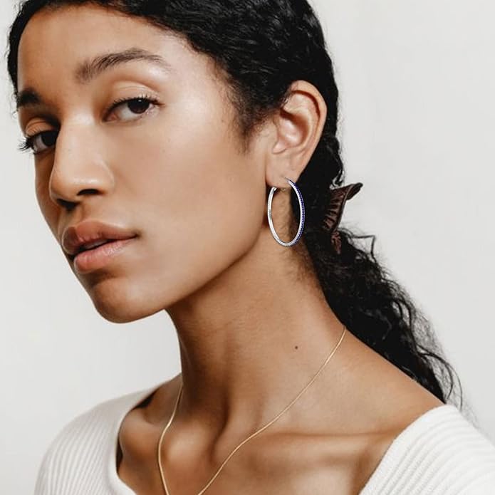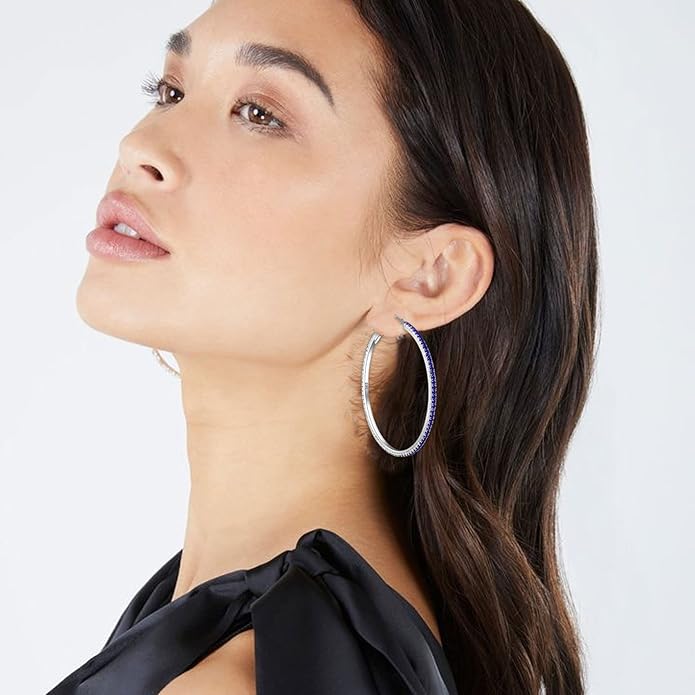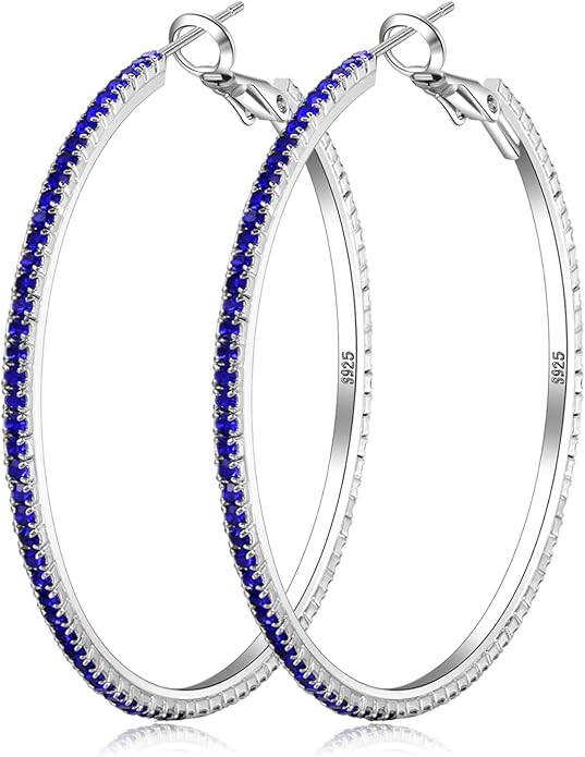 - LIGHTWEIGHT STERLING SILVER HOOPS:Classic sparkly rhinestone hoop earrings are a great statement piece for any outfit, All eyes are sure to be on you when you accessorize with OOOPEL hoop earrings featuring large blue hoops with shimmering rhinestone detailing.