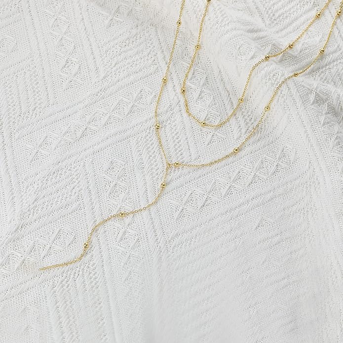 - FRIENDLY MATERIALS: Our gold layered Y bead necklaces are made of hypoallergenic material brass and 14K gold plated to ensure the chain keeps tarnish-free, nickel free, lead-free, and hypoallergenic for a long time. Women with sensitive skin need not worry. It is suitable for all-day wear.