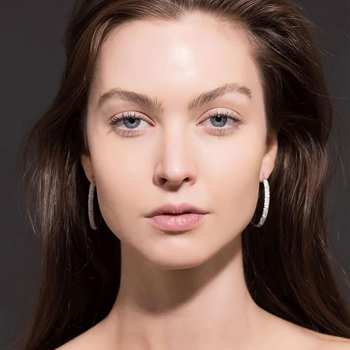 925 Sterling Silver Earrings Large Rhinestone Hoop Earrings Big Cubic Zirconia Hoop Earrings Thin Rhinestones Round Hoop Earrings for Women 20/30/40/50/60/70mm Sparkly Hoops With Crystals for Womens