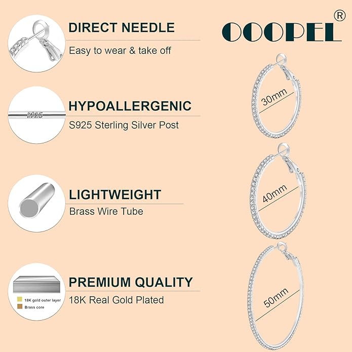 - LIGHTWEIGHT STERLING SILVER HOOPS:Classic sparkly rhinestone hoop earrings are a great statement piece for any outfit, All eyes are sure to be on you when you accessorize with OOOPEL hoop earrings featuring large black hoops with shimmering rhinestone detailing.