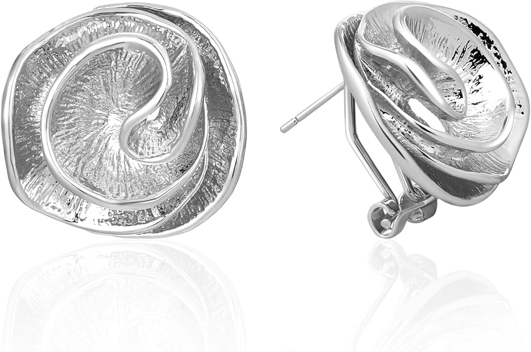 - Two-Tone Stud Earrings: Features a two-tone design; half hoop style with intertwined crossover details adds a fashionable touch