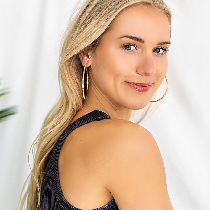 - LIGHTWEIGHT STERLING SILVER HOOPS:Classic sparkly rhinestone hoop earrings are a great statement piece for any outfit, All eyes are sure to be on you when you accessorize with OOOPEL hoop earrings featuring large silver hoops with shimmering rhinestone detailing.