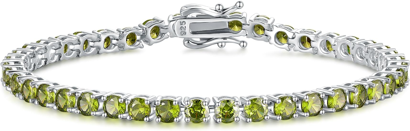 - [MEASUREMENTS]: This August Birthstone Peridot Tennis Bracelet width: 4mm. Chain length: 7.2"/18cm. Total weight: 16g.