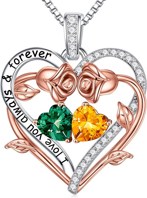 - GIFTS FOR WOMEN: The double heart necklace represents the two of you forever tightly held together. This unique rose heart birthstone necklace is the perfect gift for women, mother, grandmas, aunts, sisters, friends, wives