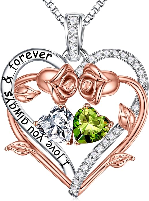 - GIFTS FOR WOMEN: The double heart necklace represents the two of you forever tightly held together. This unique rose heart birthstone necklace is the perfect gift for women, mother, grandmas, aunts, sisters, friends, wives