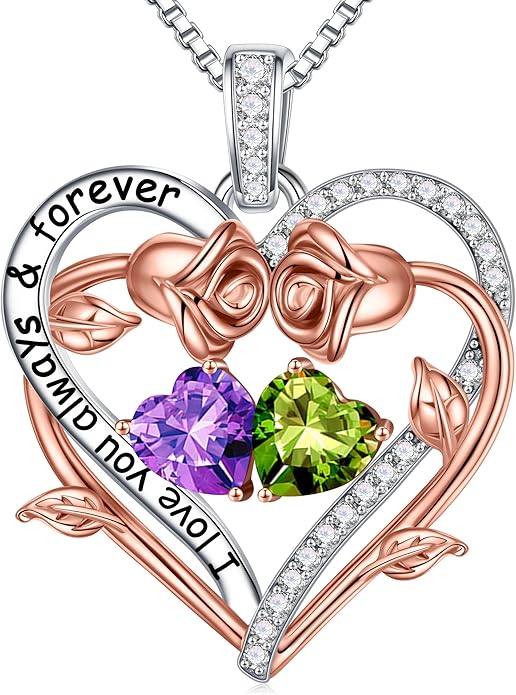 - GIFTS FOR WOMEN: The double heart necklace represents the two of you forever tightly held together. This unique rose heart birthstone necklace is the perfect gift for women, mother, grandmas, aunts, sisters, friends, wives