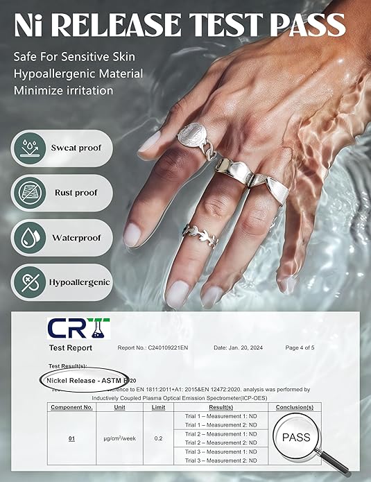 - Hypoallergenic Chunky Rings--Crafted with surgical-grade stainless steel, these silver-hued rings resist tarnishing and oxidation. The chunky silver rings for women maintain their mirror finish without polishing, while smooth edges prevent skin irritation. Ideal rings for women with metal sensitivities seeking non-tarnish silver accessories.