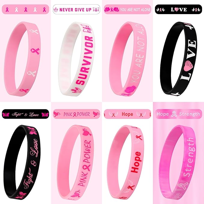 - Breast Cancer Gifts for Women: These bulk breast cancer silicone bracelets are suitable for charity events, community public welfare activities,breast cancer awareness events etc. Our breast cancer awareness accessories can be distributed to people as activity gifts, so that people in your group can act together, care for women, and raise awareness of breast cancer