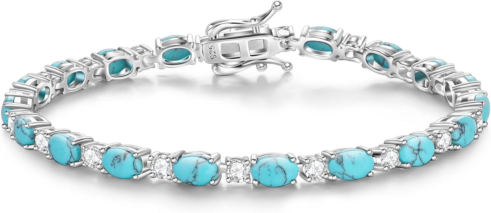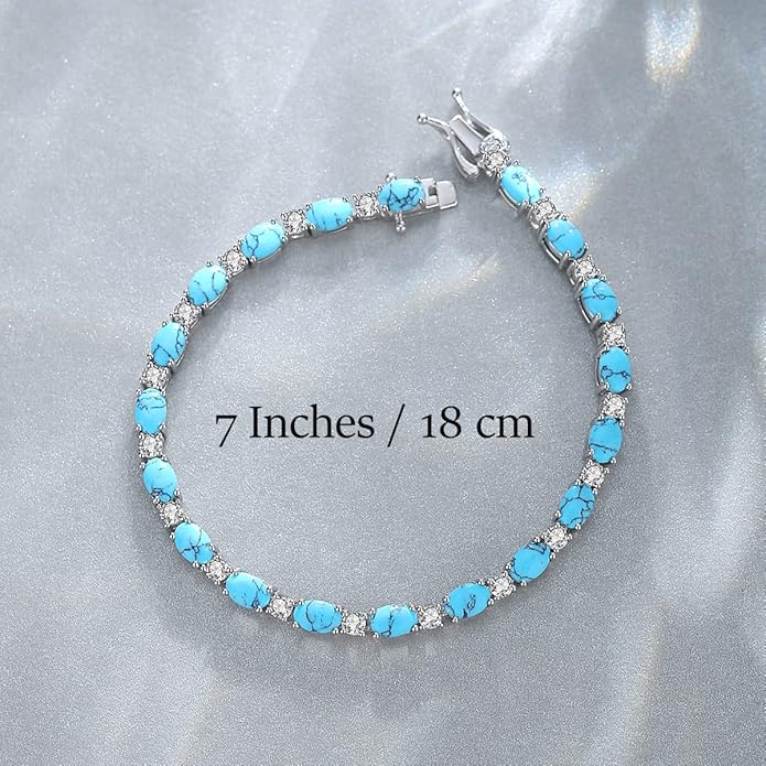- ❴♥ Fine Jewelry ♥❵The FANCIME Sterling Silver turquoisel tennis bracelet are well crafted in 925 sterling silver and created turquoise. Four-claw inlay technology which can make the stone stay more stable on the bracelet. We offer lead free, nickel free and hypoallergenic jewelry that are safe to wear.