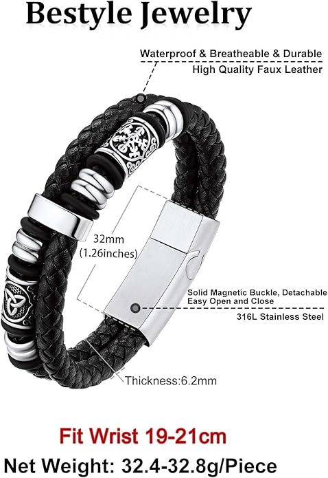 - 💕HIGH QUALITY Leather Bracelets💕 Fine Handcraft, Made of Soft Braided Leather Material and Solid Thick Stainless Steel Viking Celtic Campass Bead, Comfortable Wear Feeling,Long Time to Use.