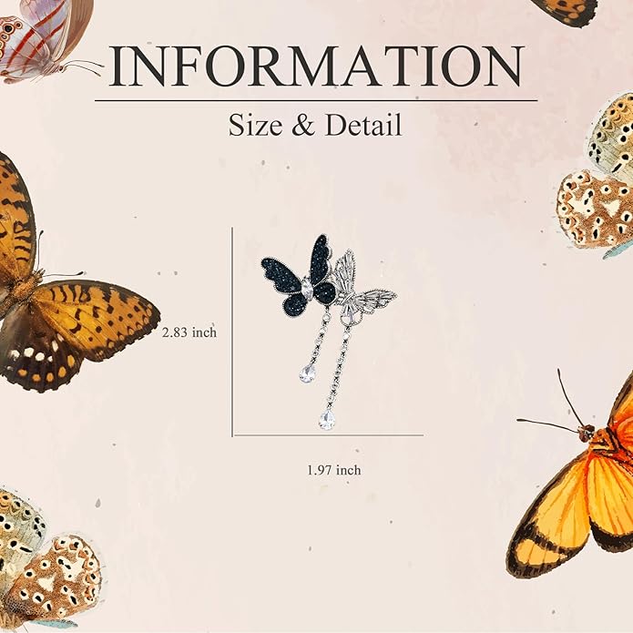 - 🦋 Double Butterfly Brooch 🦋 This butterfly fringe brooch highlights the cheerful and lively image of butterflies. And the design of the rhinestone butterfly brooch is novel, it is suitable for all kinds of dresses, highlighting your unique charm. Butterfly tassel brooches make your ensemble look retro and stylish.We believe this double butterfly brooch is the perfect gift for your wife or mom.