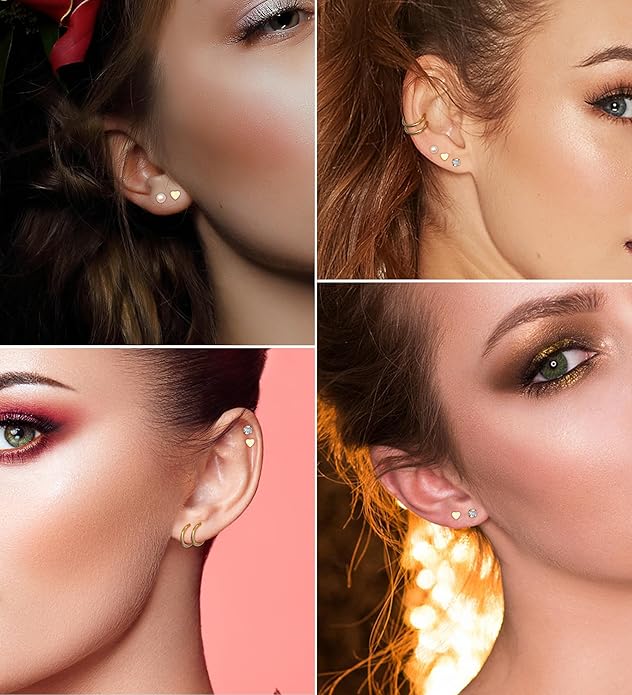 - Hypoallergenic Earrings Size-----Gauge:20G(0.8 mm) pin thickness, post length: 6mm, flat back size: 5mm, Pearl/CZ/Heart diameter: 4mm. Hoop earrings inner diameter: 8mm/10mm. Well fitted and stackable, can be used as sport/nap/sleeper earrings, safe and comfortable to wear.