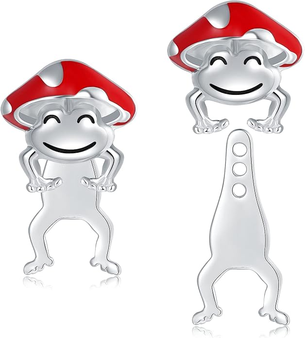 - Mushroom Frog Stud Earrings Design: Mushrooms have a deep symbolic meaning in our lives. They symbolize wealth, abundance, ancient wisdom, rebirth, and good luck.Wearing these cute Frog mushroom earring studs will bring a little sparkle to your daily outfit.