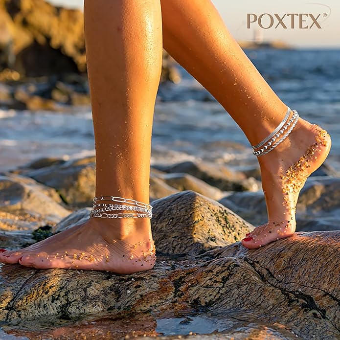 - GOOD QUALITY LAYERED ANKLETS: Our fashionable layered silver anklets looks shiny and pricey, it will exceed your expectations. Each silver chain is well made and looks authentic. The anklets are delicately designed, don't worry that this set of gold chain bracelets will weigh down your wrist.