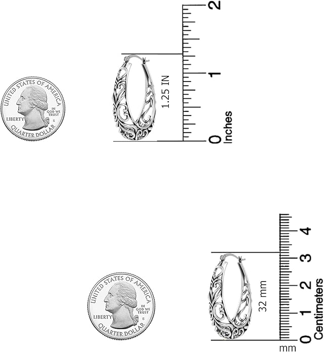 LeCalla 925 Sterling Silver Hoop Earrings for Women | Women's Filigree Hoop Earrings | Antique Oxidized Openwork Mesh Filigree Cut Earring Chunky Hoops | Hypoallergenic Vintage Filigree Oval Hoop Earrings for Women