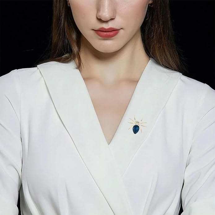 - 🕷️ Spider Brooch 🕷️ The spider brooch is a symbol of joy, mindfulness, focus and composure and financial prosperity. We believe that spiders bring good luck, find the starting point when the spider begins to make its web and you will always be lucky. When you wear this blue crystal spider brooch, it will refresh your overall look and add an extra bit of energy to your outfit.