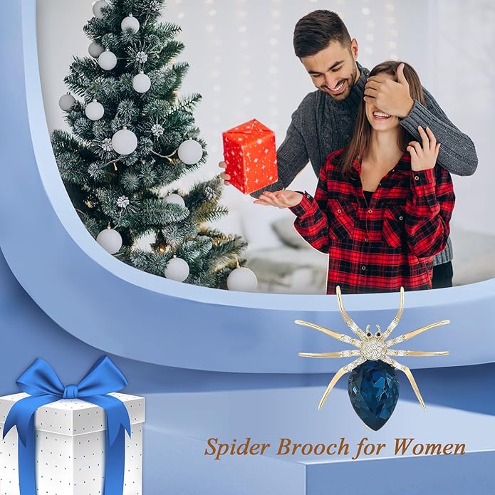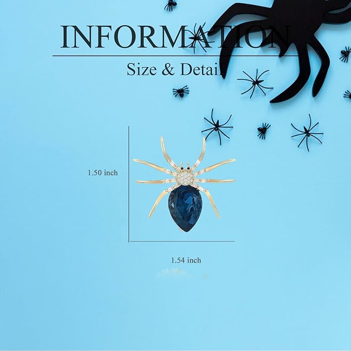 - 🕷️ Spider Brooch Size 🕷️ The size of brooch is 1.54 x 1.50 inches,and the weight of this brooch is 0.27 oz.And this blue crystal spider brooch will come with a delicate box.