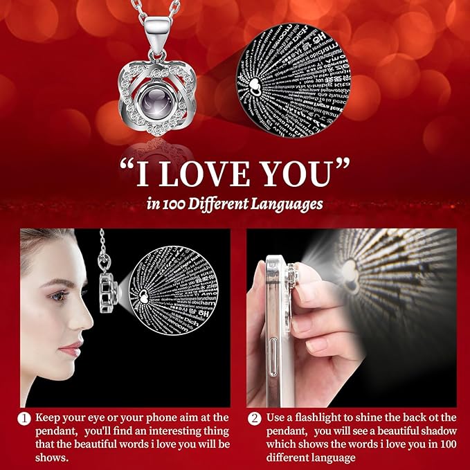 - ❤ 【 Preserved Rose with Necklace】Unique double heart-shaped structure and is engraved with " I LOVE YOU necklace 100 Languages " to express love to her. The two hearts are tightly intertwined, symbolizing the love for each other and it will be an exclusive gift for her.The i love you necklace on hidden inside bottom of the rose box, as a romantic gifts for her, Unique design of double love "I LOVE YOU necklace" and gift box preserved rose, gift Ideas for women for every romantic occasion.