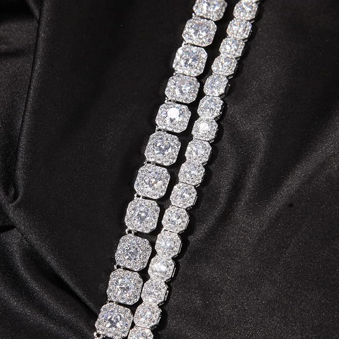 - 【Customized Sizing】The bracelet offers sizes of 7 and 8 inches, with the square Moissanite measuring 9mm (0.35 inches). Weighing 27.7 grams, it promises an elegant yet comfortable fit.