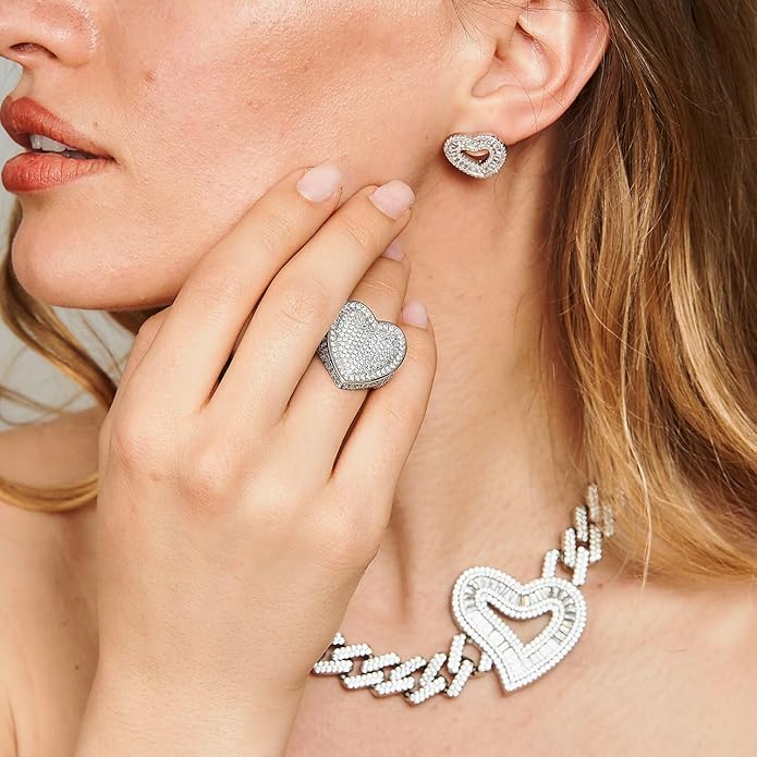 - High-quality materials: The surface of this baguette cz heart ring is made of high-quality 14k gold plating. The hip hop heart open rings are prong setting with 5a cubic cz stones to make them sparkly and look like diamonds. This gorgeous heart ring is beautifully rendered with gold metal and diamonds, making you more charming and elegant.