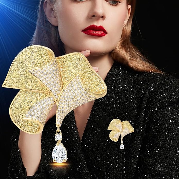 Flower Brooch Pin - Rhinestone Flower Pin 18k Gold Plated - Thanksgiving Day, Birthday, Wedding Gifts for Mom, Wife