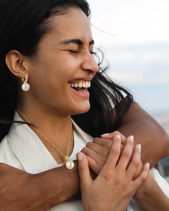 - 14K Gold Plated: This women's jewelry set is made of 14K gold plated and Pearl Drops. Highly polished. Nickel free, hypoallergenic and always shiny. Our jewelry is suitable for almost all people with sensitive ears.