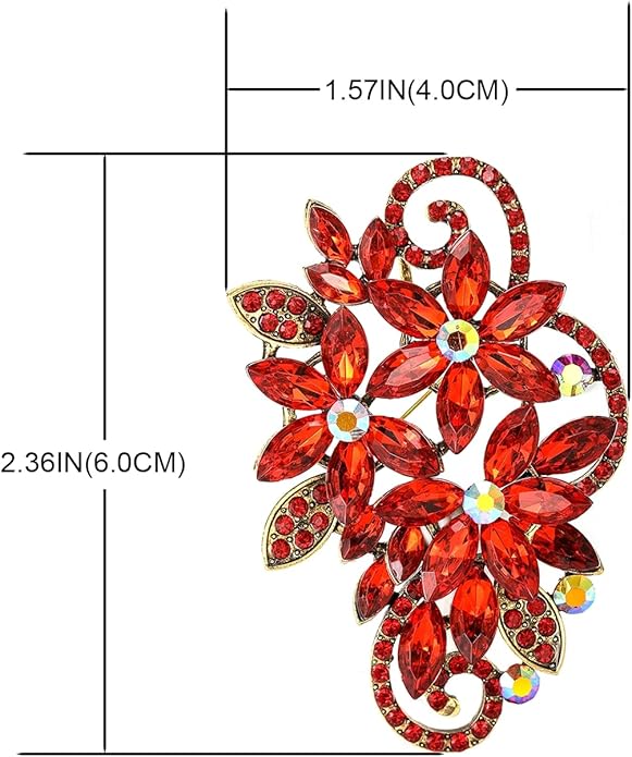 YOQUCOL Vintage Red Austrian Crystal Rhinestone Flower Shape Brooch Pin for Women