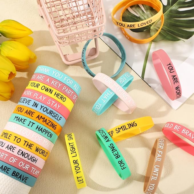 - 【Wide Application】Our motivational wristbands are suitable for a variety of occasions and activities, such as office, school, party, outdoor, team sports, etc. Inspirational gifts bulk can be used as birthday gifts, holiday gifts, party gifts, class rewards, and commemorative gifts. No matter where you are, you can carry these motivational wristbands to remind you to stay positive