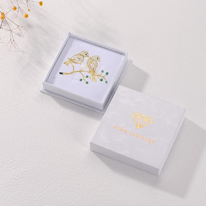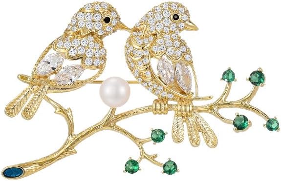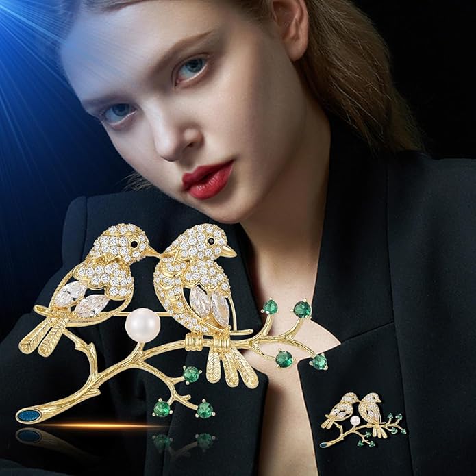 - 🐦【Gold Plated Bird Brooch】The rhinestone bird brooch pin consists of two birds standing on a branch and a pearl,symbolizes good luck and beautiful love. Wearing a gold-plated bird lapel pin can bring good luck to the wearer. Women's bird brooch Packaging: The bird brooch jewelry comes with a delicate gift box.