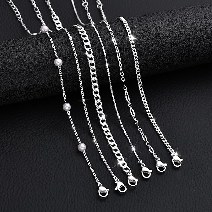 - 5-Pieces Silver Plated Bracelets Set: The set consists of beaded, figaro, box chain, paperclip, herringbone, and satellite bracelets. These bracelets are perfect for layering or standalone use.