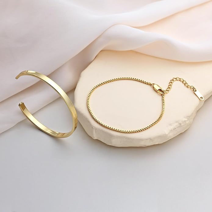 - 【Gold bracelet set】: Trendy bracelet and bangles, you can wear alone or together, the most fashionable design makes you glamorous and at the forefront of fashion