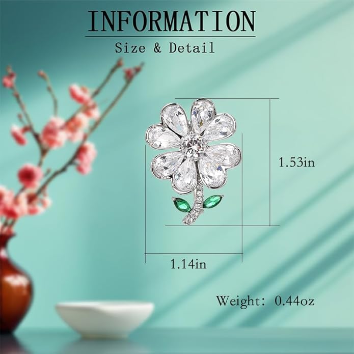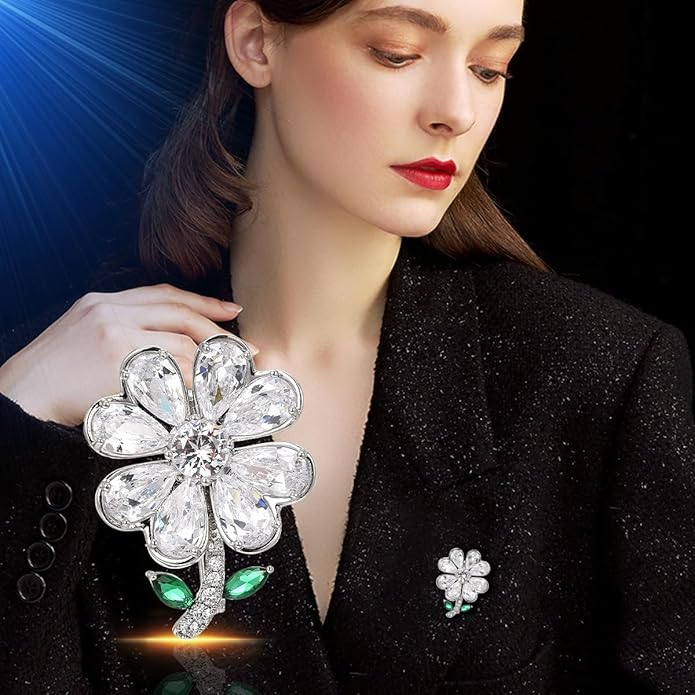 - ❤️【Rhinestone Flower Brooch Pin Material】Rhinestone Flower Lapel Pins made of copper/rhinestone/Zircon. Protect your skin and give you a better wearing experience.Small size, light weight, easy to keep and carry around.