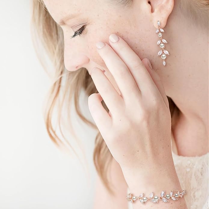 - Material Pearl Wedding Jewelry Set Features Simulated Pearls with Brilliant Marquise Cubic Zirconia, Lead-free and Nickel-free, Hypoallergenic