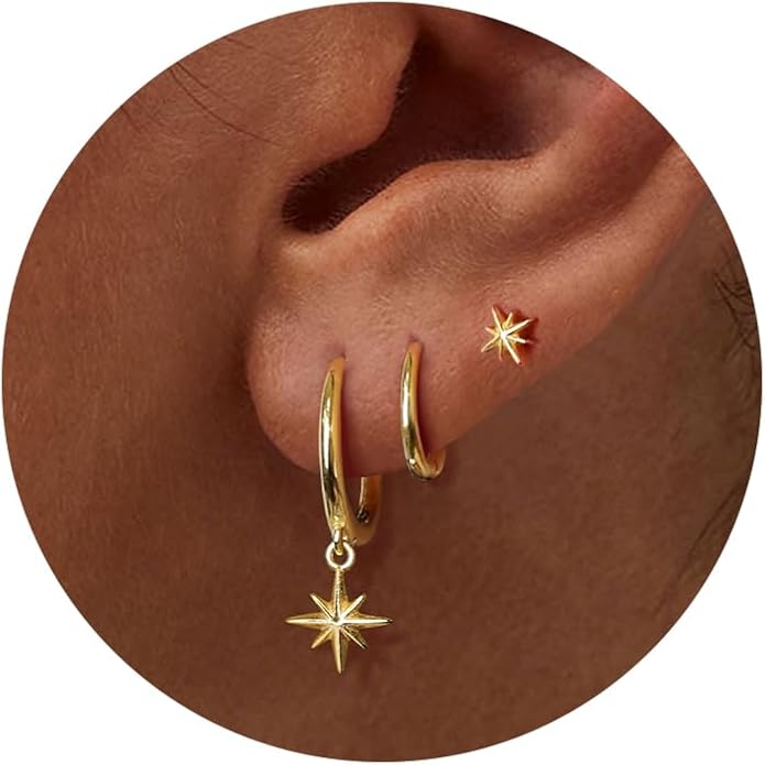 Freekiss 3 Pairs Gold Hoop Earrings Set: Dainty Stud Earrings Trendy Small 14K Gold Plated Hypoallergenic Dangle Cartilage Huggie Hoop Earrings for Women Gold Jewelry for Women Gifts