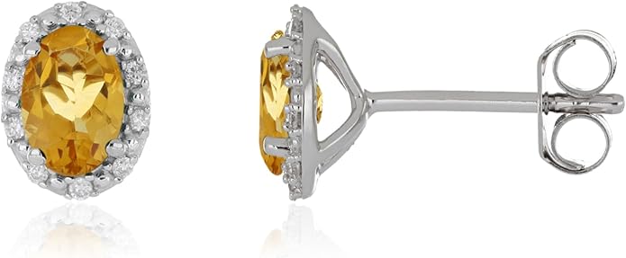 - WOMEN'S CITRINE STUDS EARING: These white gold diamond earrings for women feature stunning Citrine gemstones, each 6x4mm in an oval cut design, set in 10K white gold. These diamond studs are perfect for everyday wear.