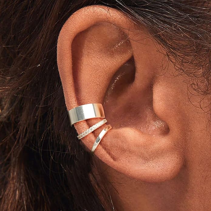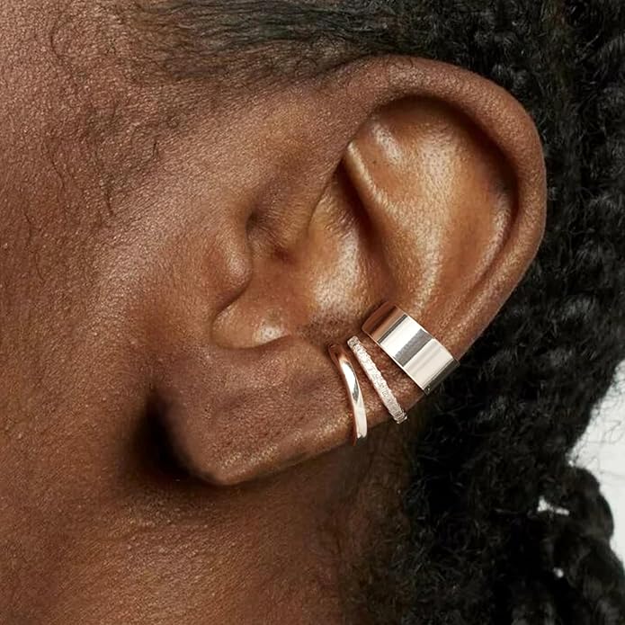 - 👂Trendy Fake Earrings: Our set features three pairs of non-pierced earrings in a classic and minimalist style that wrap around your ear, creating the illusion of an orbital piercing;They can be worn layered or alone, and are adjustable for a comfortable fit;These dainty ear cuffs are perfect for everyday wear and suitable for any occasion