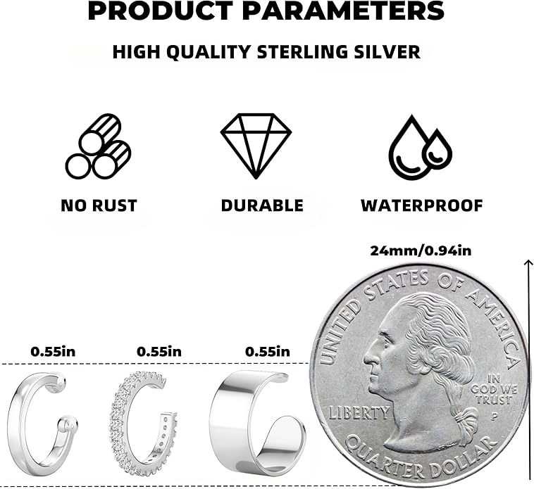 - 💖Lightweight &Comfortable Earring Set: These clip-on earrings are made from high-quality sterling silver plated, making them safe, hypoallergenic, lightweight, and durable; The high polishing process ensures they won't scratch your skin or tarnish easily; The ear cuffs are inlaid with sparkling cubic zirconia for an eye-catching look