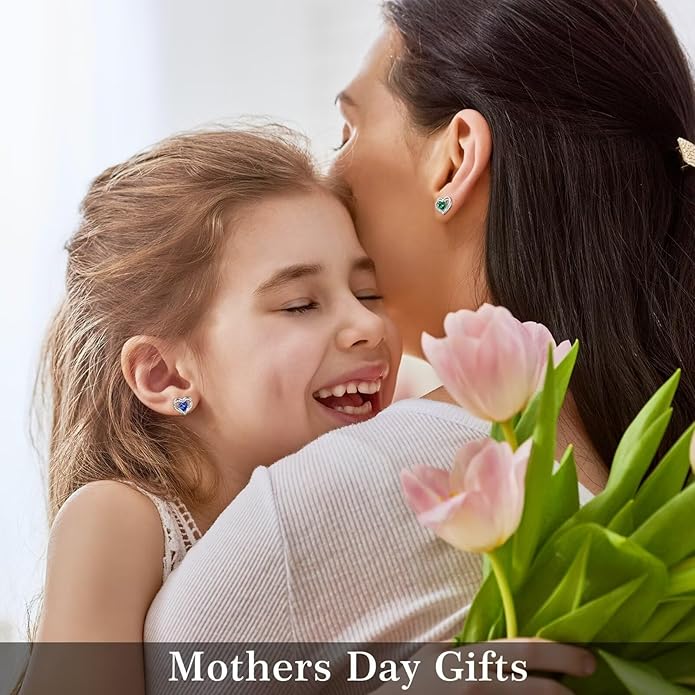 - GREAT EARRING IDEA:The heart birthstone stud earrings come with a beautiful PU box, ready for giving. Perfect for niece, sisters, mom, wife or any other women you love on Birthday, Christmas, Valentine's Day, Anniversary or other special occasions.