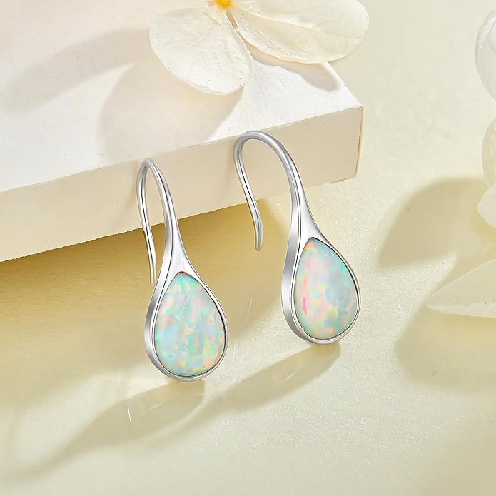 Opal Earrings 925 Sterling Silver Hook Drop Teardrop Gemstone Earrings October Birthstone Dangle Earrings Jewelry Gift for Women