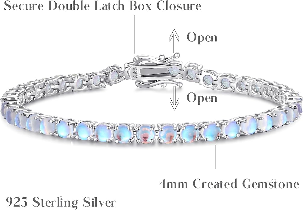- ✦MOONSTONE BRACELET✦ This beautiful round moonstone bracelet is modern and classic. The tennis bracelet is set with 42 pieces moonstone stones, make the bracelet look so sparkling and stylish. Wearing it you will be more shinning in any occasions.