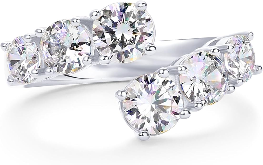 - Make every moment sparkle with our standout open ring, showcasing premium AAAAA cubic zirconia stones in sizes ranging from 5mm to 4mm. Designed to create a stunning visual effect, this ring effortlessly transitions from day to night wear. With its 5mm band width and an open design stretching to 12.8mm, it combines comfort with unparalleled elegance, ensuring you stand out in any crowd.