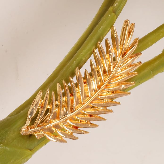 - NEW! Touchstone Indian Bollywood Fashion Handcrafted Pretty Leaf Inspired Fabulous Designer Jewelry Brooch Hair Accessory In Gold Tone For Women. SPECIFICATIONS: Brooch Weight: 4 Gms. Length: 1.75 Inches. Width: 0.50 Inch.