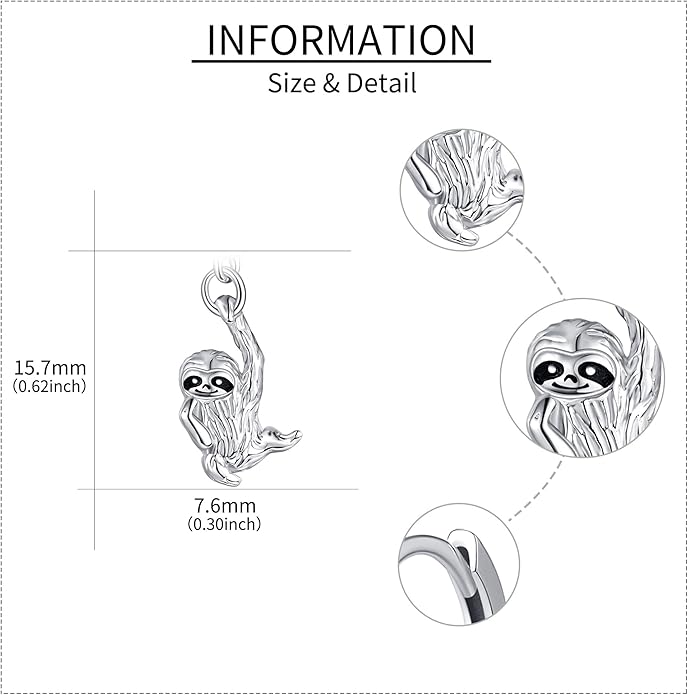 - 【Material】These cute sloth earrings made of high quality 925 Sterling Silver. NEVER FADE. Anti-allergic, Nickel-free, Lead-free, Cadmium-free, safe for sensitive skin