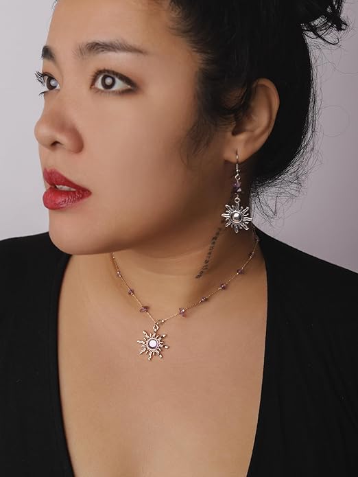 - Y2K BOHO HIPPIE CRYSTAL SUN NECKLACE: The sun is a symbol of warmth, light, and life, representing energy, vitality, and creativity. It can also symbolize growth, strength, and power. With its elegant design and versatile style, this sun necklace is sure to be a cherished addition to any jewelry collection