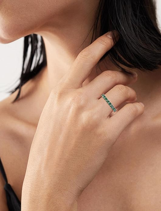 Princess Cut Stackable Rings 925 Sterling Silver Eternity Rings Birthstones Jewelry for Women Size 5-10