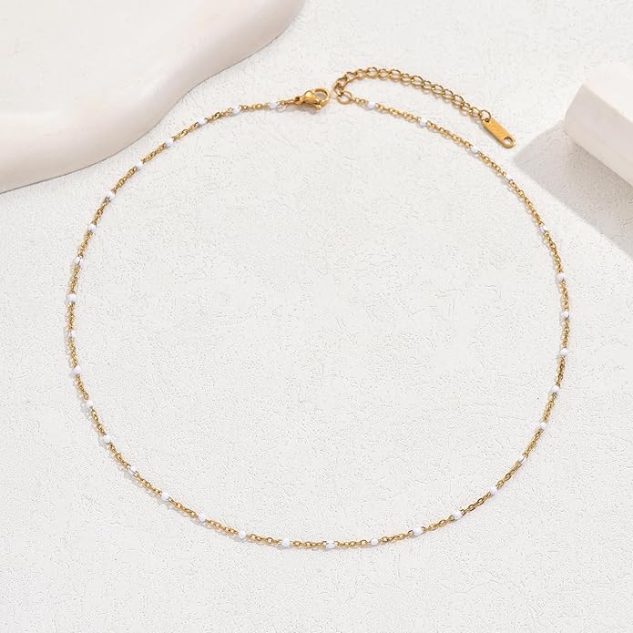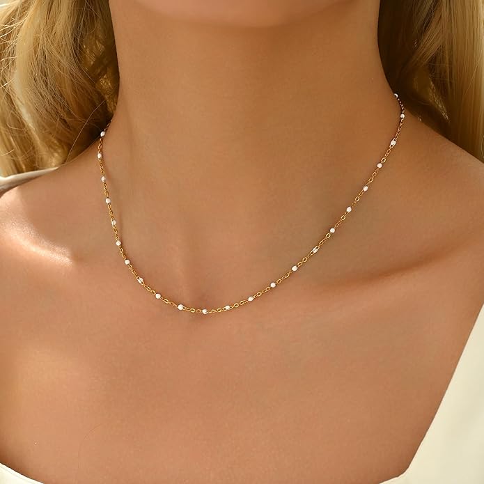 - Simple Chain Necklace Design: Handmade with dainty enamel white beads, this chain will bring a warm and modern touch to your outfit and is sure to become your new favorite go-to accessory